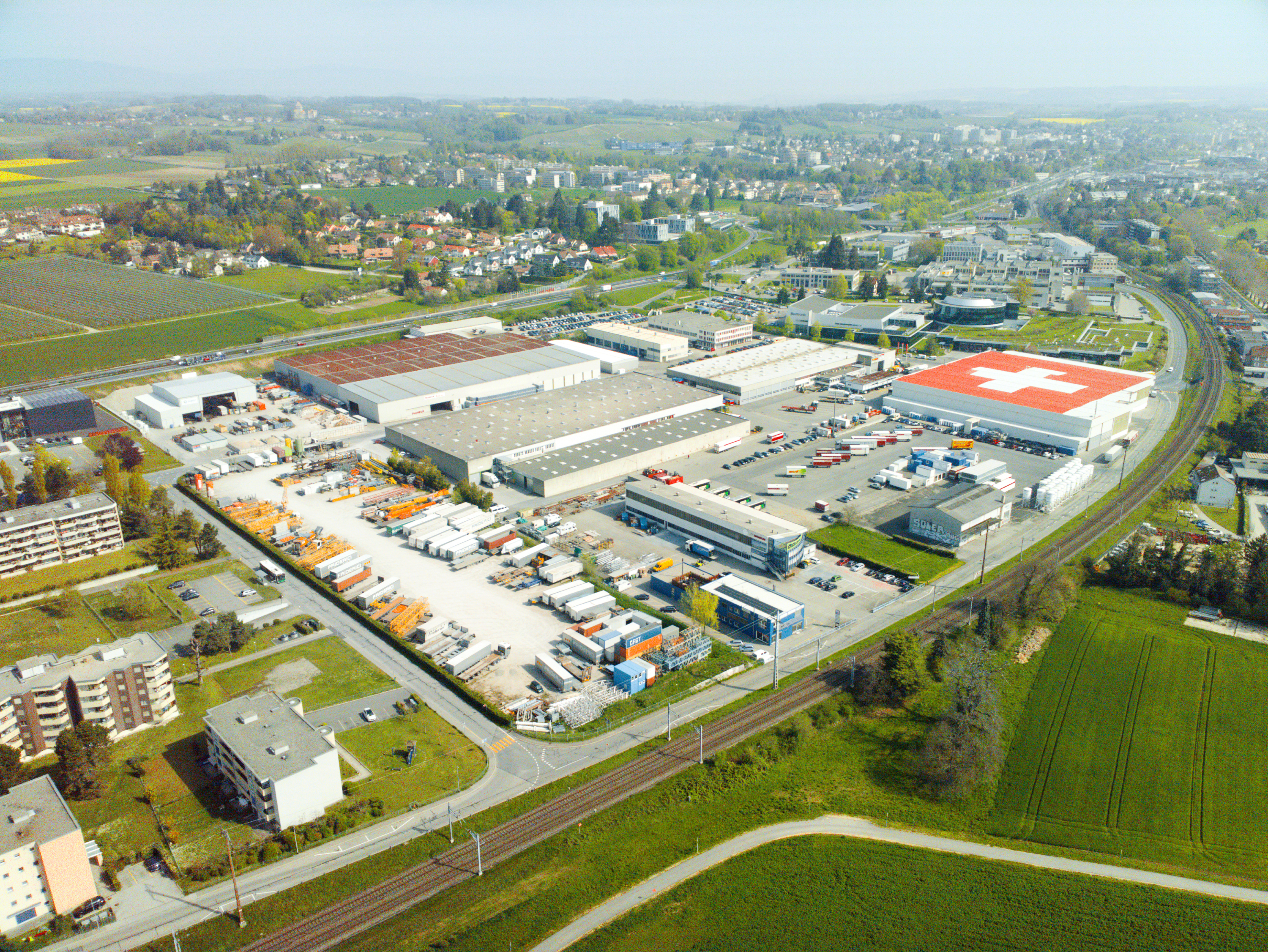 The 80,359 m² plot has a unique location between Geneva and Lausanne. The site borders the A1 motorway as well as the Lausanne Geneva railway, providing easy access. This attracted Switzerland’s logistic company Friderici Special SA to the site.